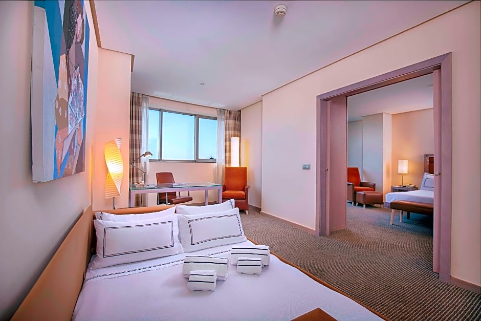 This spacious suite is consisted of of 1 living room, 1 separate bedroom and 1 bathroom with a bath and free toiletries. The air-conditioned suite offers a flat-screen TV with cable channels, soundproof walls, a mini-bar, a tea and coffee maker as well as city views. The unit offers 2 beds.